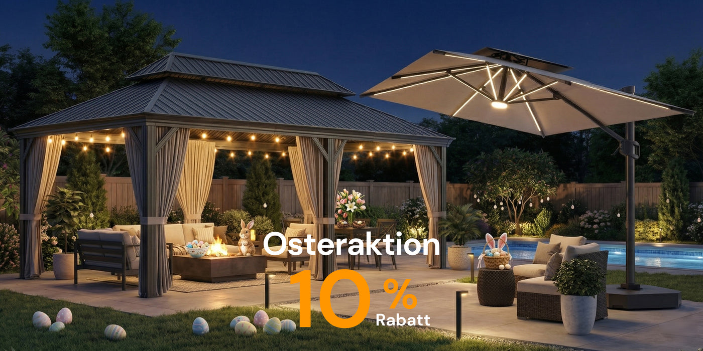 Der Frühling ist da und Ostern steht vor der Tür – die perfekte Zeit, Ihren Garten oder Balkon mit einem Patioslife Auslegerschirm in eine gemütliche Wohlfühloase zu verwandeln. Ob Balkon...